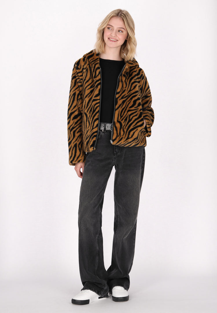 Uwolnij swoją dziką stronę dzięki tej kurtce z kapturem i efektownym wzorem inspirowanym zebrą. Długie rękawy, zwierzęcy nadruk, wsuwane kieszenie i zamek błyskawiczny z przodu na całej długości zapewniają styl i funkcjonalność. Zaprojektowany z myślą o cieple, obszerny kaptur zapewnia osłonę, a dopasowany dół i mankiety zapewniają wygodne dopasowanie. Idealna jako codzienna odzież wierzchnia w zimowe dni, ta kurtka emanuje swobodnym urokiem.