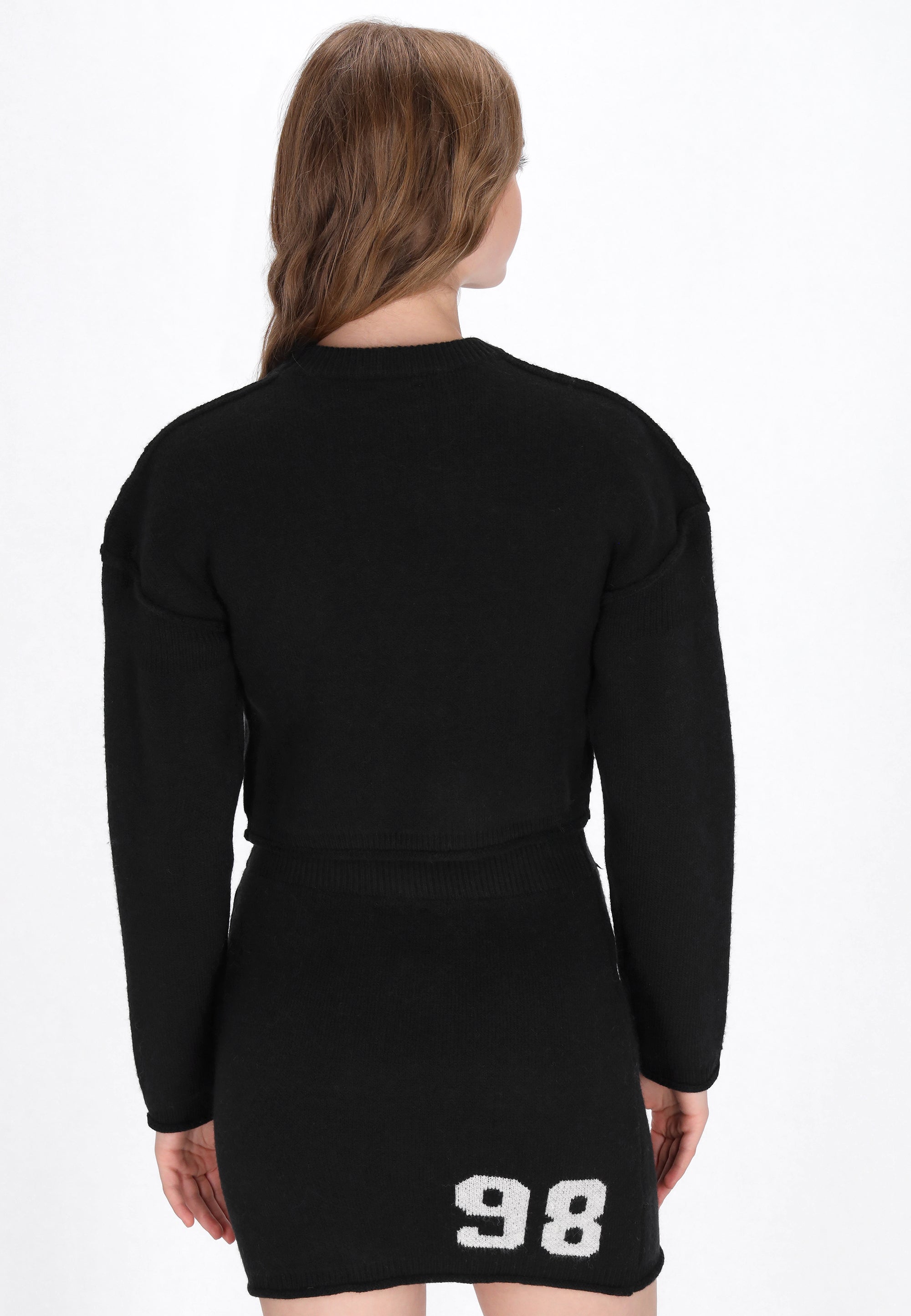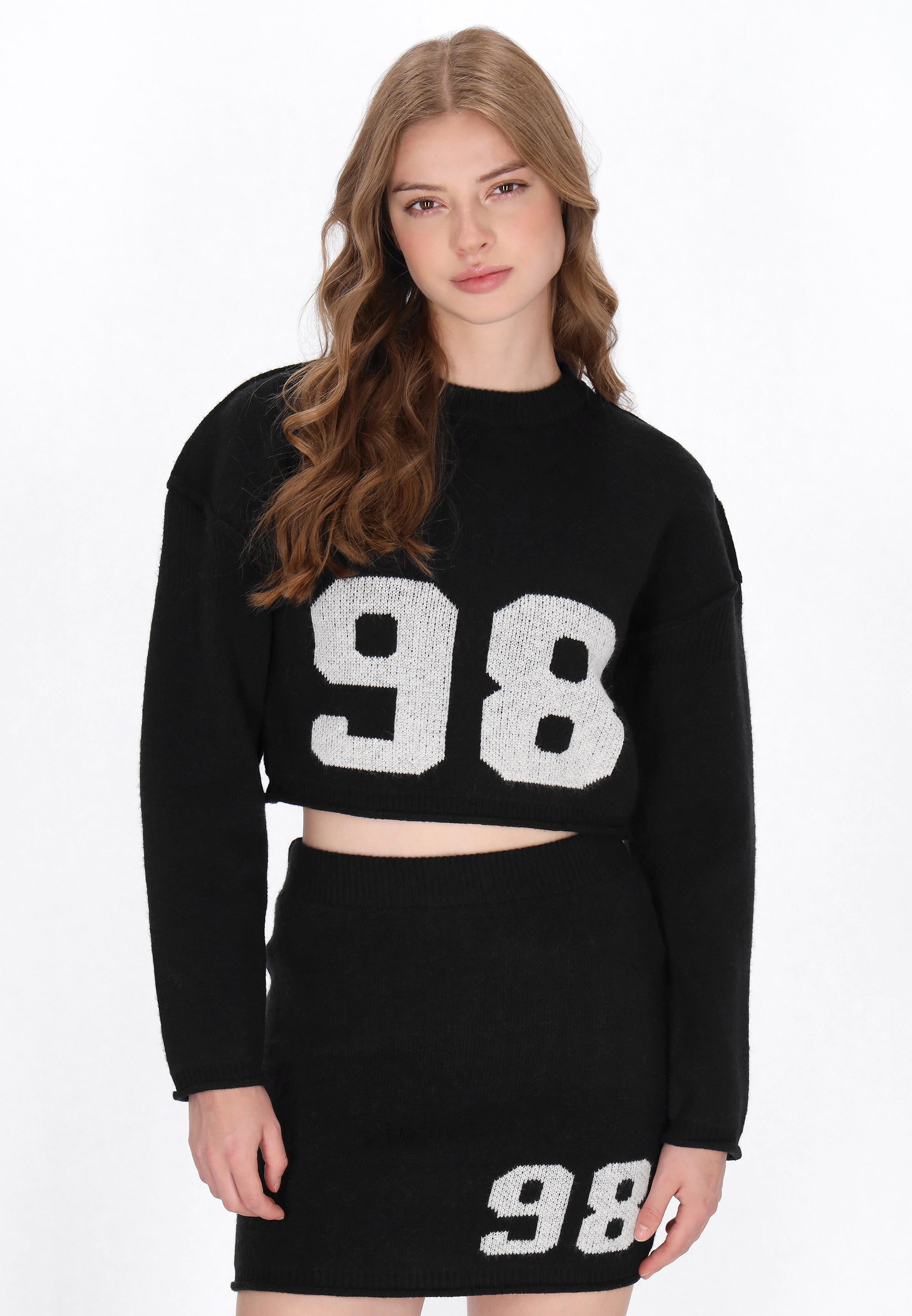 Add a cool edge to your everyday wardrobe with this cropped knitted sweater from the Young Fashion Collection. Featuring a regular fit, round neckline, and drop shoulders, it offers a relaxed yet stylish silhouette. The raw hem adds a trendy touch, while the plain pattern and soft knit fabric ensure all-day comfort. Perfect for casual street style, this sweater pairs effortlessly with high-waisted jeans or skirts for an easy, on-trend look.